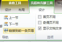 接著,我們在焦點放在第2節(jié)頁眉(頁腳)上,在頁眉頁腳設計中,將「鏈接到前一條頁眉(頁腳)」取消掉。這樣,我們便可以分開設置不同節(jié)的頁眉頁腳了。