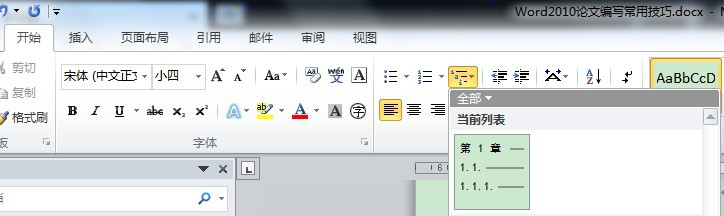 同時,我們在導航窗格中清楚的看到了文字結構。當然這還不夠,接著,我們將光標放在某個章節(jié)標題處,選擇開始——段落——多級列表。