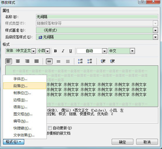 這些沒有固定格式,所以自行修改,注意在樣式基準處,務必選擇(無樣式),同時這樣式設置請在上一小節(jié)前進行。