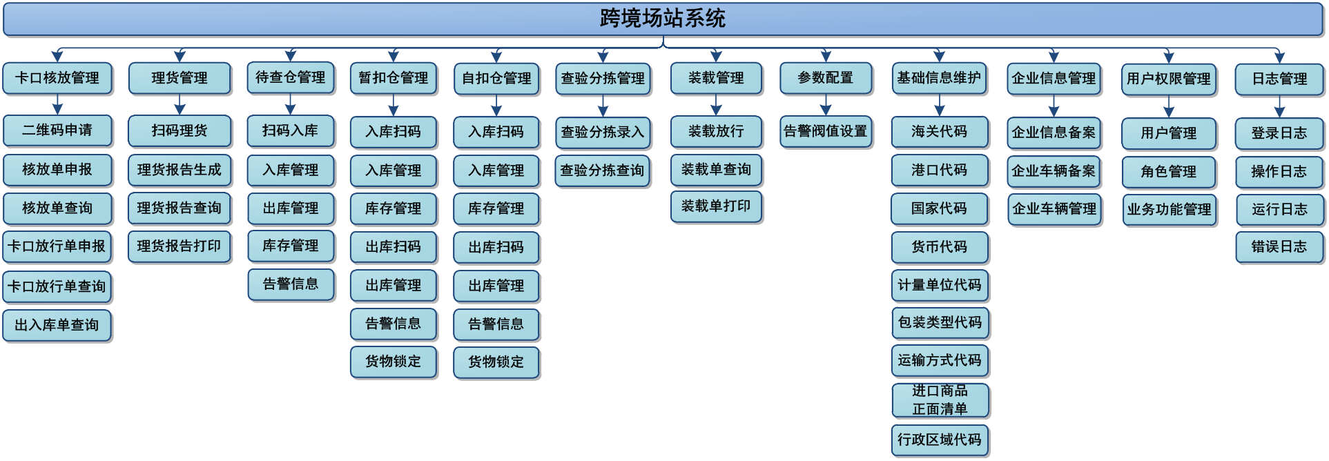場站管理系統(tǒng)包含車輛備案管理、二維碼管理、核放單管理、卡口放行單管理、堆場管理、倉庫管理、查詢統(tǒng)計(jì)、基礎(chǔ)資料管理等功能模塊。
